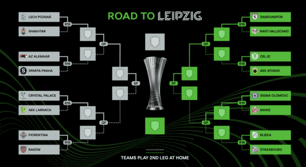 Είναι που είναι το Κόνφερενς Λιγκ εξόχως ανοιχτό λόγω των ομάδων που μετέχουν, η κλήρωση για το μπράκετ ως τον τελικό άφησε τους πάντες να ελπίζουν. Η ΑΕΚ θα βρει ξανά στο δρόμο της την Τσέλιε, ομάδα από την οποία έχασε 3-1 εκτός για την πρώτη αγωνιστική της League Phase.