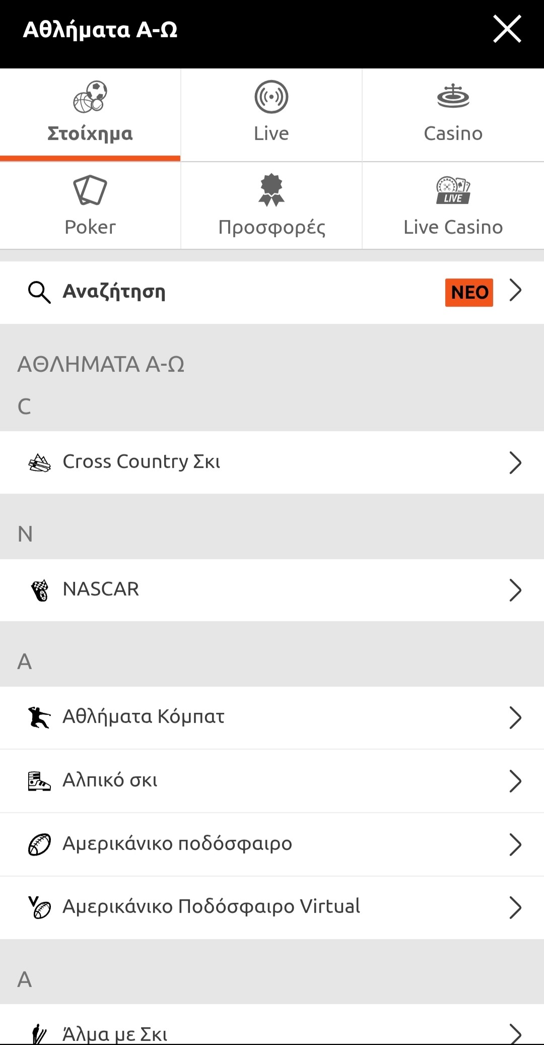 Στα δημοφιλέστερα αθλήματα (ποδόσφαιρο, μπάσκετ, τένις) θα δείτε πως υποστηρίζεται και live streaming, κυρίως στους πιο εμπορικούς αγώνες.